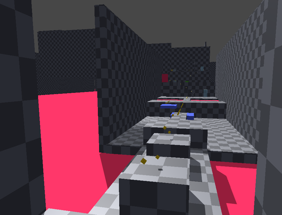 From there, I began to design the greybox layout of the level. The process was focused on designing a sequence of gameplay beats centered around a limited set of mechanics, with a deliberate gradual escalation in difficulty. To achieve a desired "flow state" I created carefully placed downbeats after moments of challenge in the level to ensure that there was a balanced rhythm between challenge and progress.