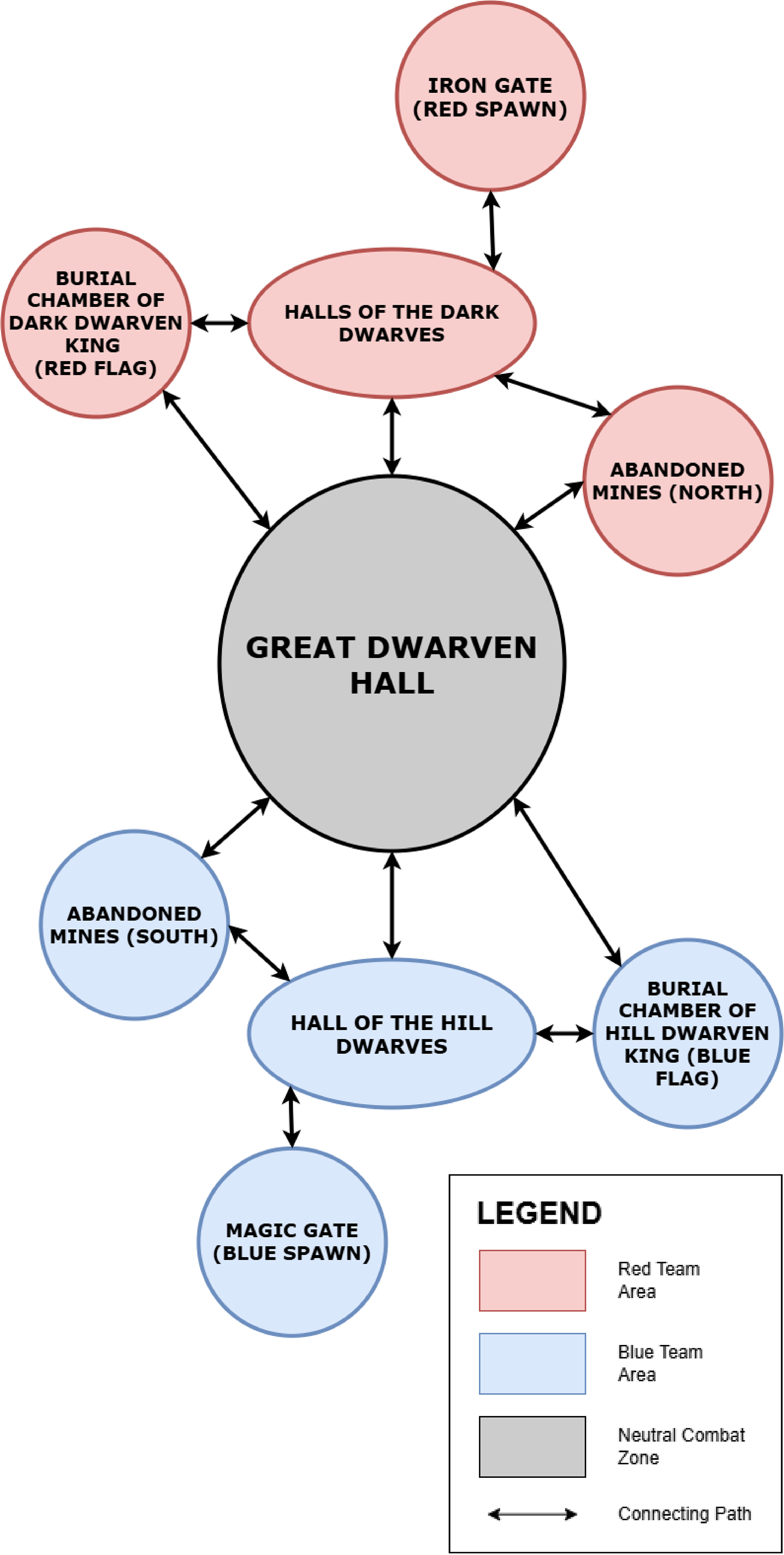 This solo level design project is an original Capture the Flag map built using Unreal Editor for Fortnite (UEFN). Set deep within a vast, subterranean Dwarven city, two teams of three players battle to steal the priceless relics of ancient Dwarven kings. Players must work together to mount strategic offensives against the enemy base while carefully defending their own, using the environment to their advantage. Flanking around walls and pillars, utilizing cover zones to evade enemy fire, and making use of different lanes of play — including grand halls, abandoned mineshafts, and crumbling bridges — are all key to securing victory.